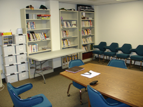 A library full of reading materials is also available to clients.