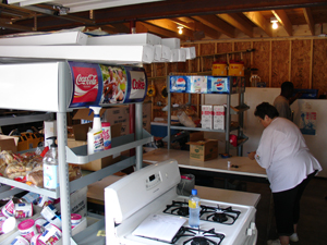 His garage is filled with refrigerated items, medication, tissues and other hygienic supplies that they give out on the last Thursday of each month to people in the community.