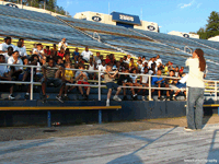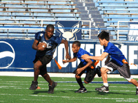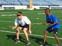 Boys and girls ages 5-14 are taught either football or cheerleading fundamentals, with the main intention being to build relationships with the parents and kids which will lead to involvement in the mentoring program. Mentoring is year-round whereas the camp lasts only four days.