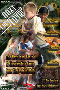 For the past five years S.P.A.N. Ministries, at Shepard’s Pasture for All Nations church in Tallmadge, has been hosting their free summer football and cheerleading camp. This year it will be held June 23rd-26th at Dix Stadium at Kent University.